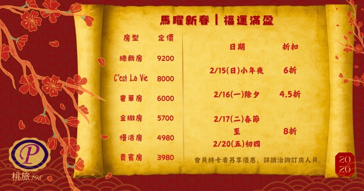 馬年開運,特頒福惠。 為慶新春、賜眾吉祥, 本館春節優惠自即日起開放預訂——